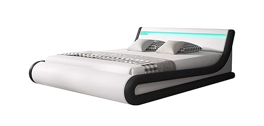 Letto Matrimoniale Contenitore Moderno Di Design Parisina Bianco Nero Rivestito In Ecopelle Per Materasso Da 180x200cm Con Luci Led Multicolore